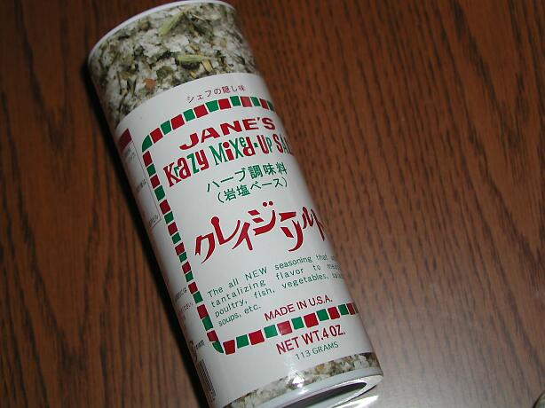 ※クレイジーソルト・・・アメリカ岩塩にペッパー、オニオン、ガーリック、タイム、セロリー、オレガノといったハーブが入ってる塩。