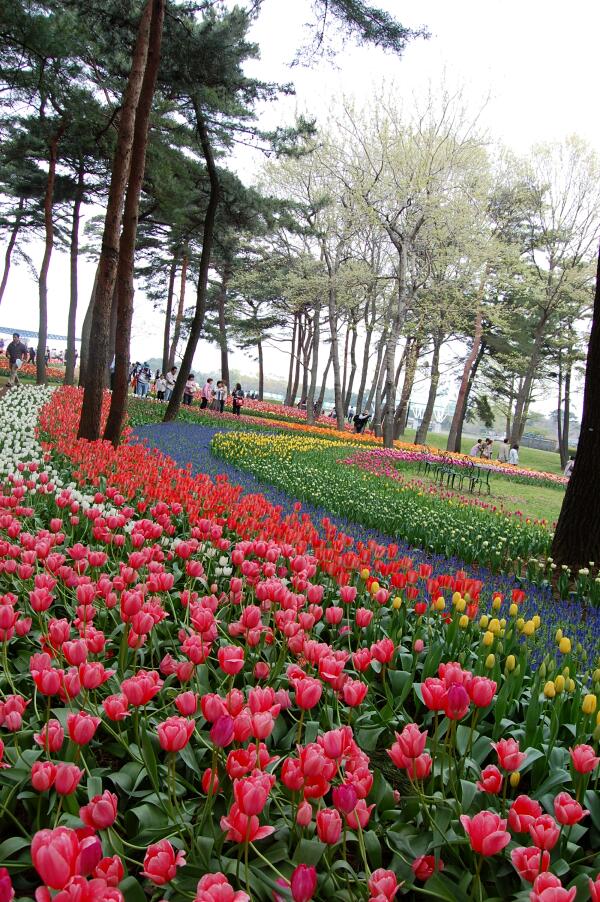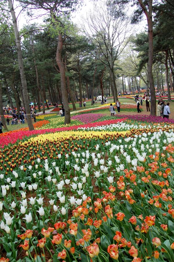 横浜公園の倍の32万本が森の中で色とりどりに咲いてました。