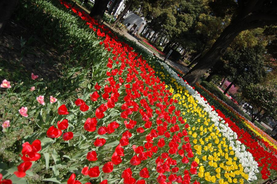 横浜公園(横浜スタジアム)へチューリップを見に行きました。