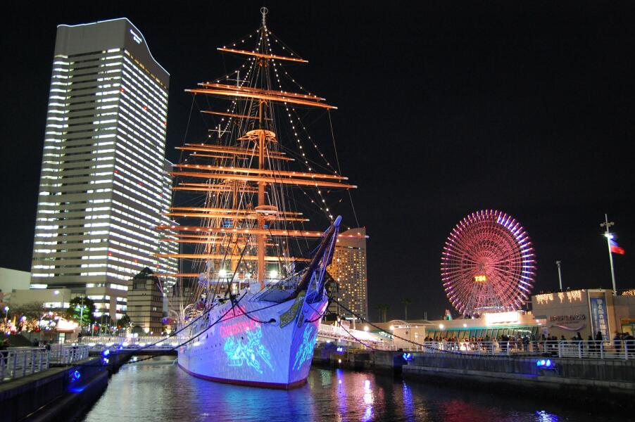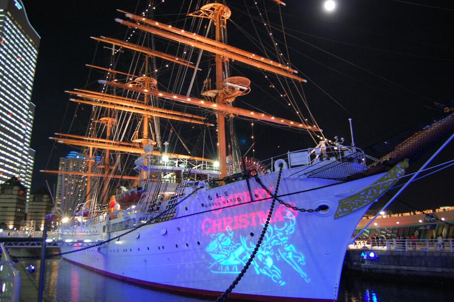 日本丸メモリアルパークではキャンドルライトがきれいでした。