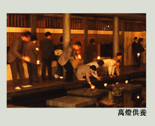 萬灯供養ではろうそくが入った小さいガラスの器を水の苑に浮かべます。