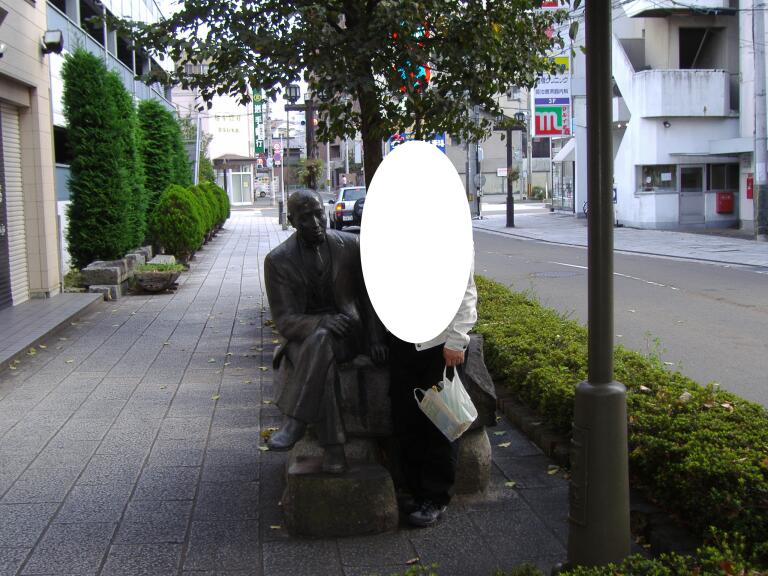 2時、駅前の滝(?)の前で祖母の弟である中道のおじいさんおばあさんと待ち合わせ。
