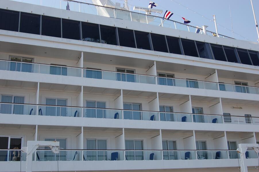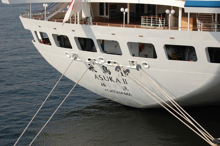 近づいてみると、飛鳥2の船尾が見えました。