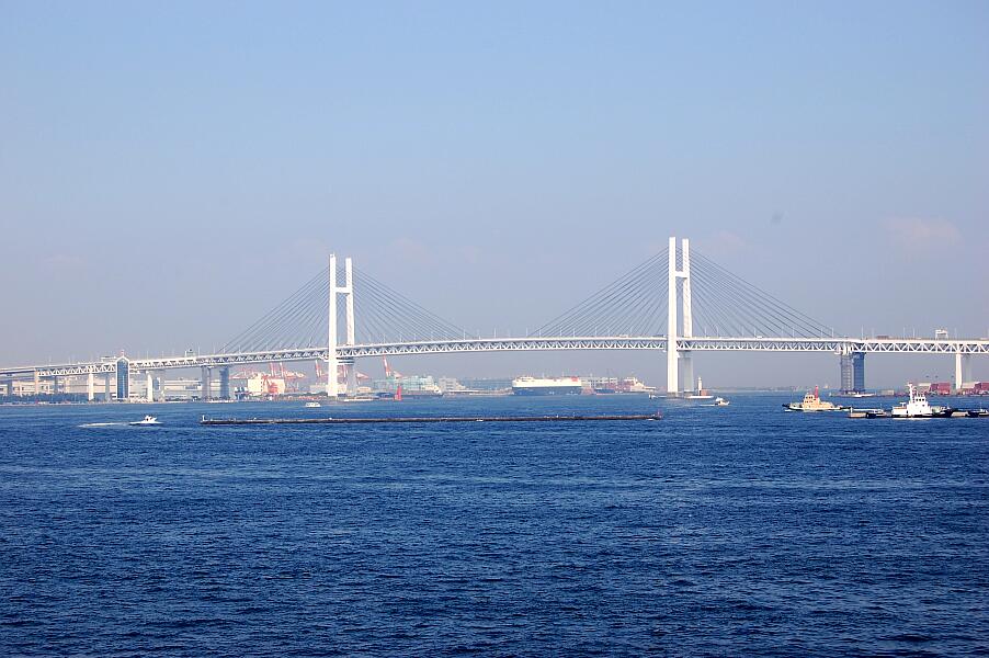 夜間決まった時間になると横浜ベイブリッジは青く、
