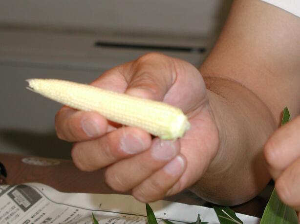 水煮でしか見たこと無かったけど・・・・とうもろこしの赤ちゃんだったんだ!