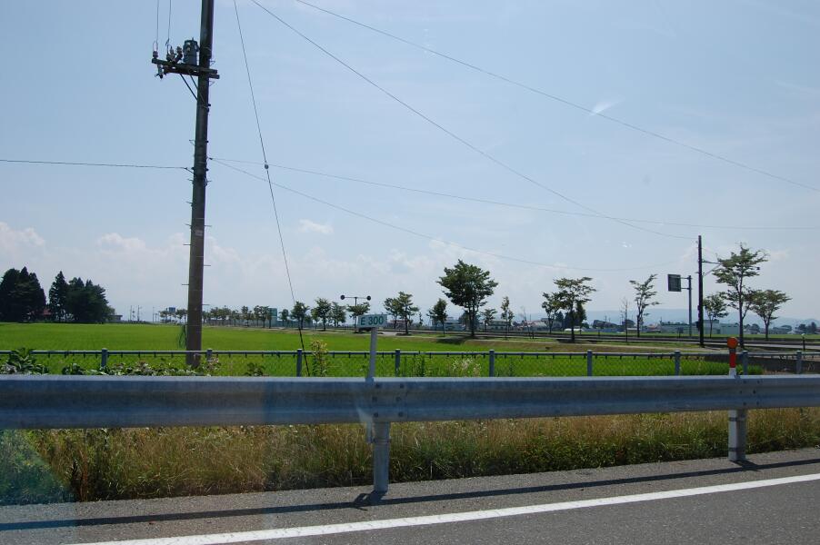 料金所を出ると、田舎くさい景色。