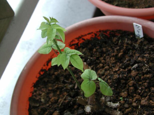 シュートが出てたんです。若緑色のシュートに同じ色の葉がひらひら。